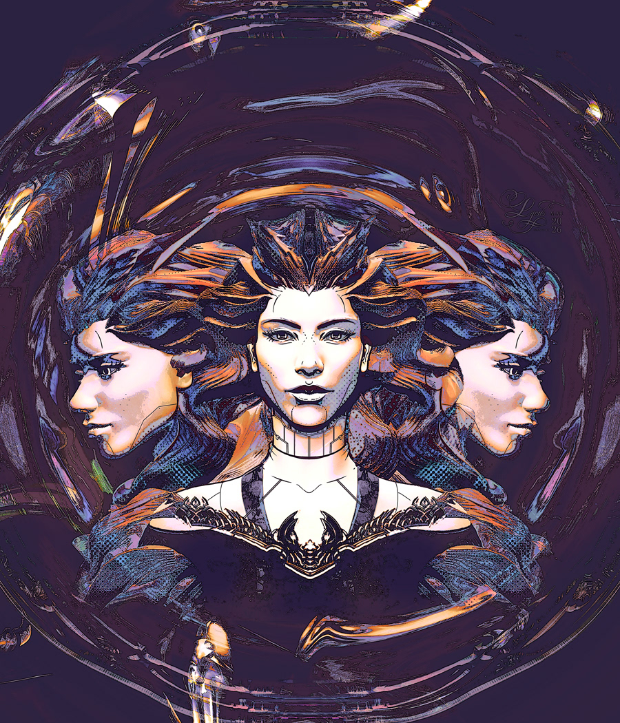 Fembot Lion Mane Character Illustration Series. v.4/24. 14 x 16 in. Giclee. March 2026