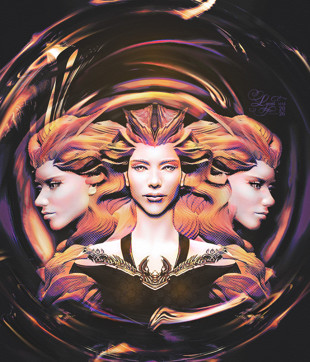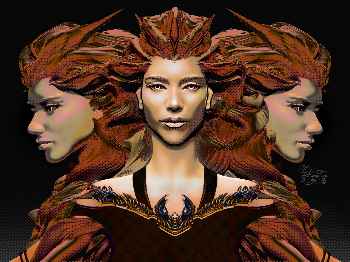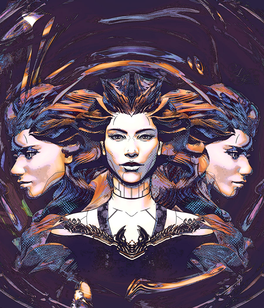 Fembot Lions Mane Character Illustration Series. v. 1/24. 14 x 16 in. Giclee. March 2026. No AI. Finished in Adobe Photoshop.